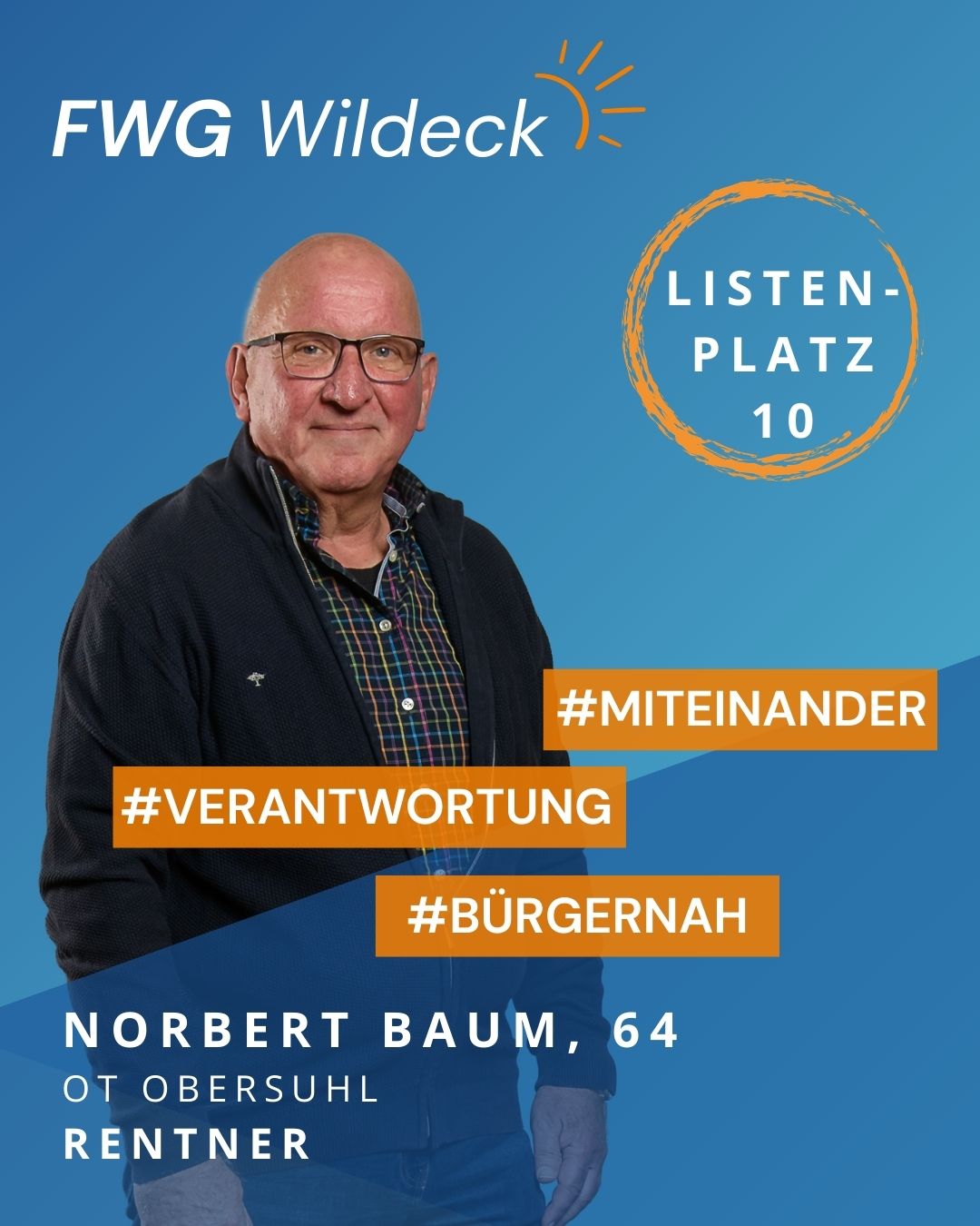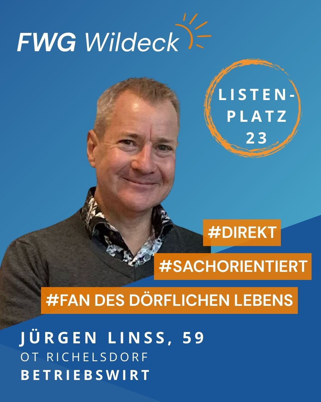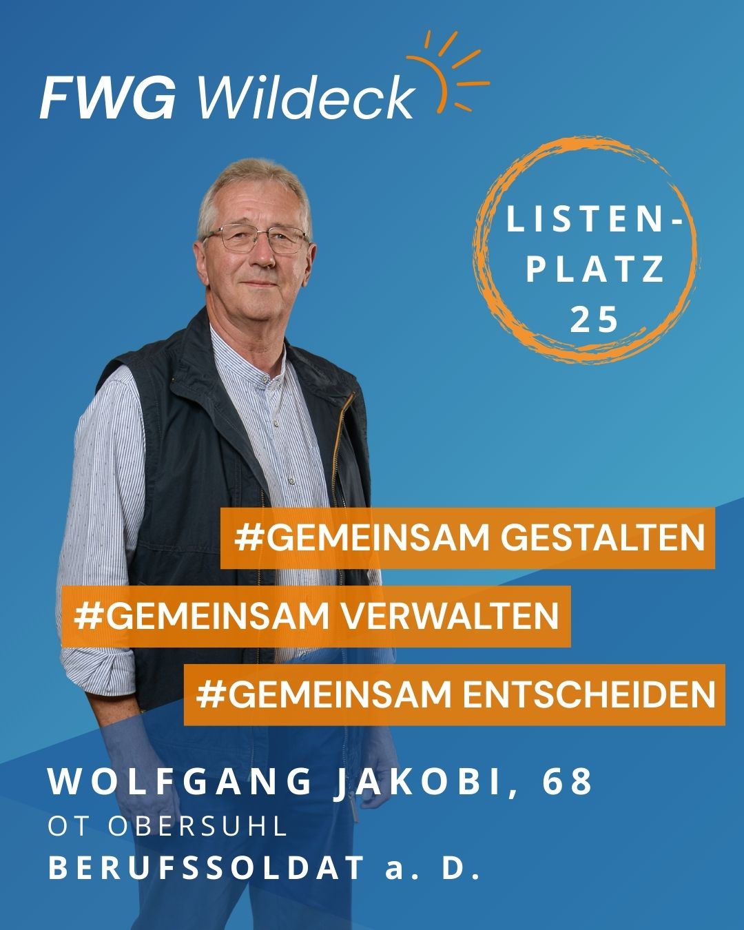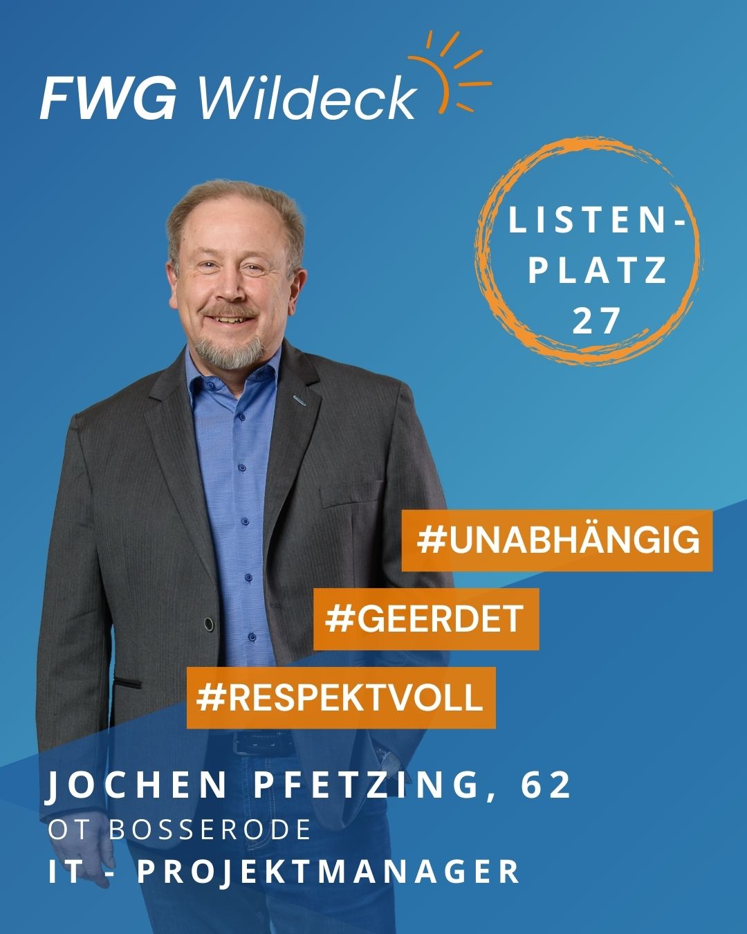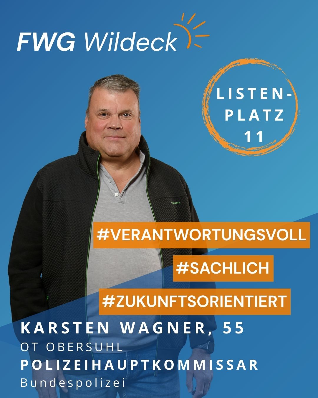 zur Kommunalwahl am 15. März 2026 tritt die FWG Wildeck mit einem starken und engagierten Team an. Erfahrene Kommunalpolitikerinnen und Kommunalpolitiker arbeiten dabei Hand in Hand mit neuen Kandidatinnen und Kandidaten, die ihre Fachkompetenz, ihr Engagement und ihre enge Verbundenheit mit unserer Gemeinde einbringen wollen. Gemeinsam setzen wir uns für eine lebenswerte Zukunft in Wildeck ein.