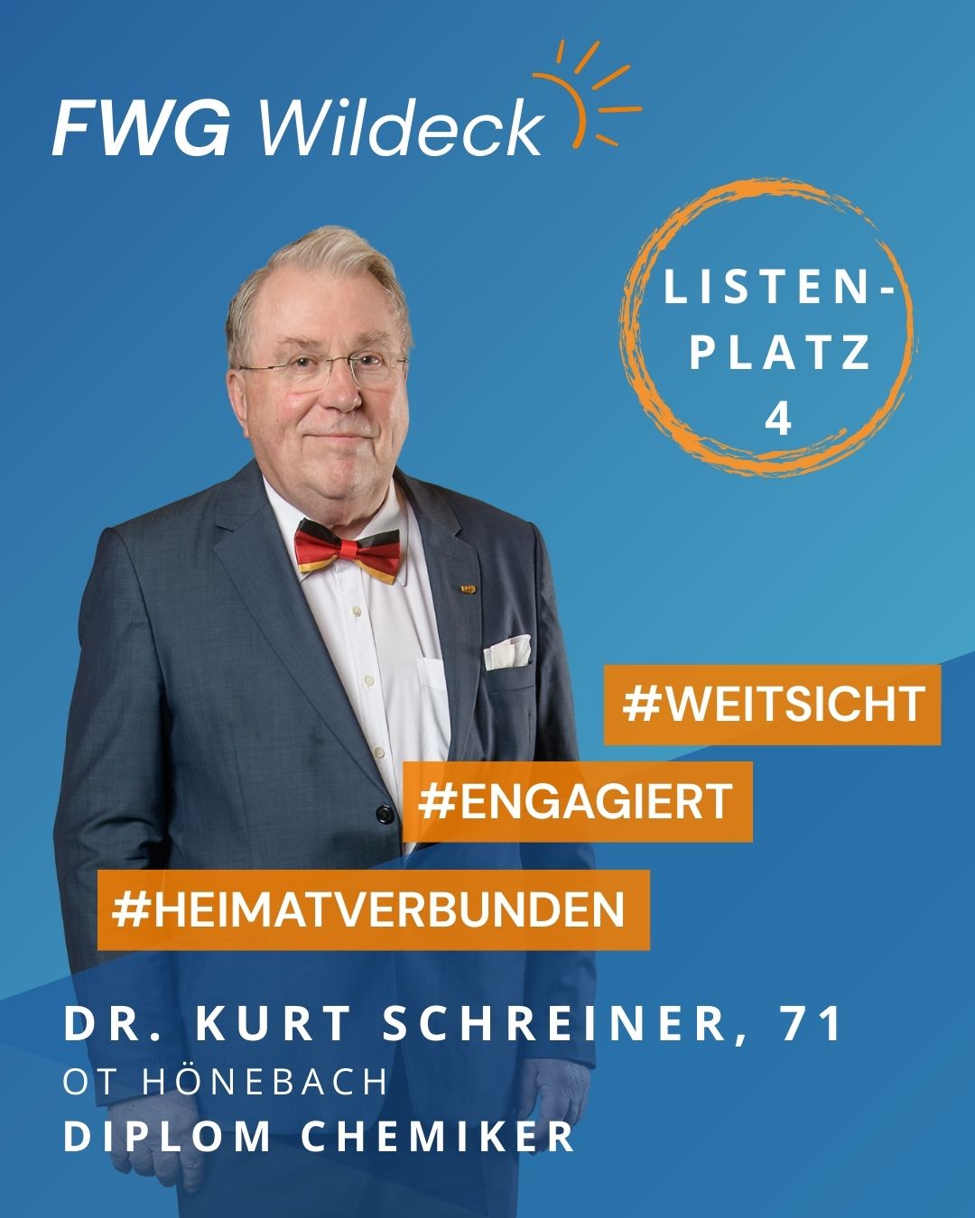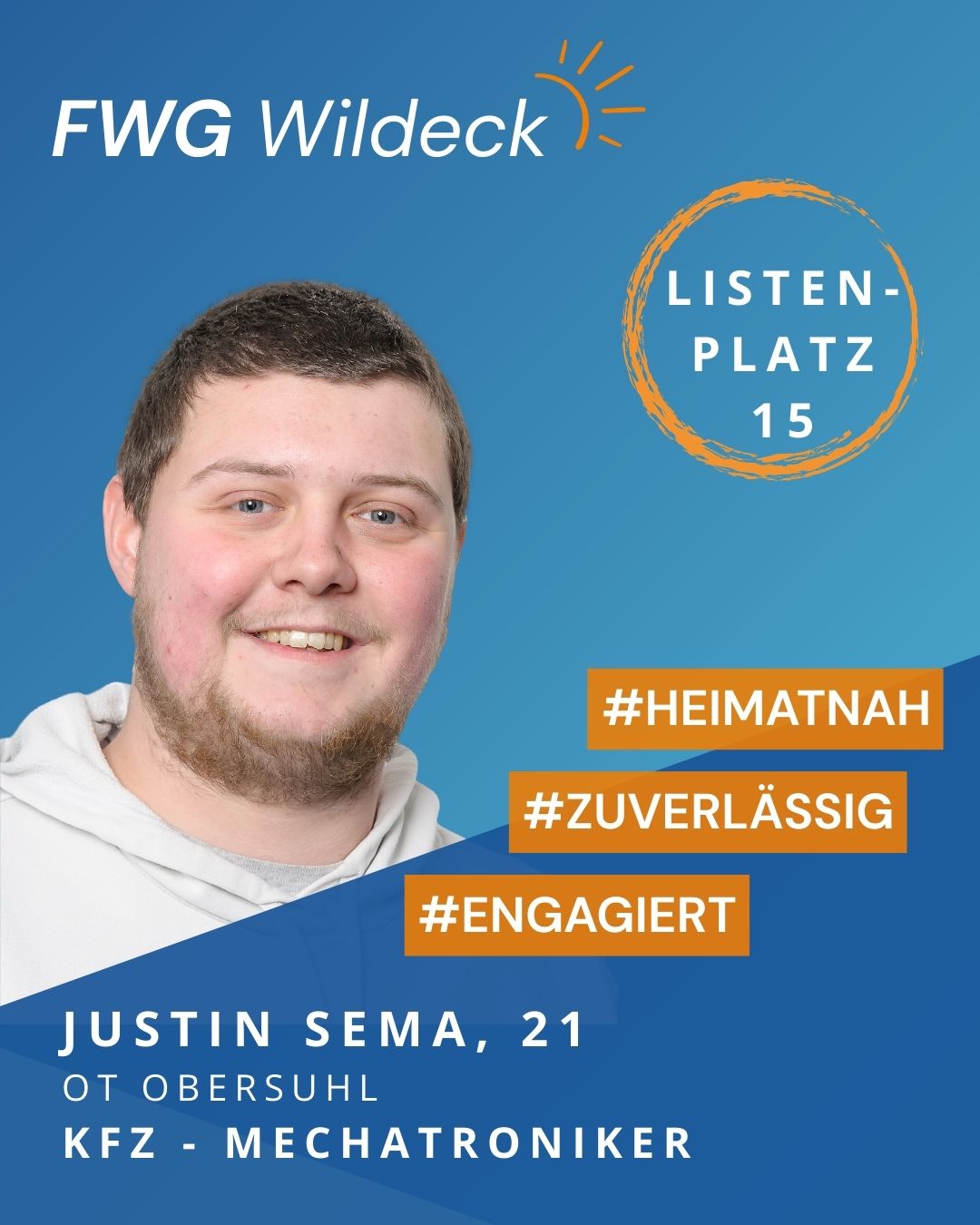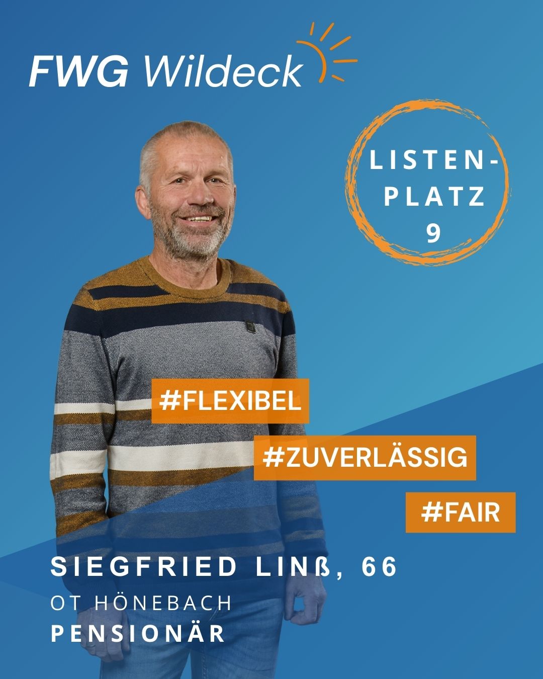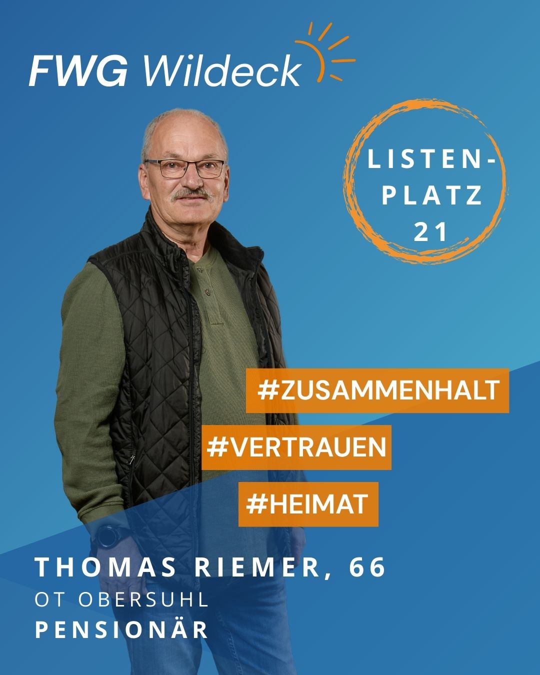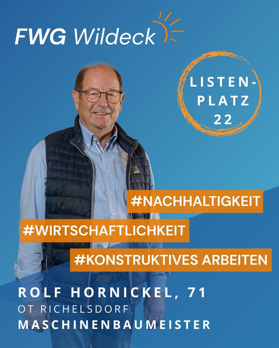 zur Kommunalwahl am 15. März 2026 tritt die FWG Wildeck mit einem starken und engagierten Team an. Erfahrene Kommunalpolitikerinnen und Kommunalpolitiker arbeiten dabei Hand in Hand mit neuen Kandidatinnen und Kandidaten, die ihre Fachkompetenz, ihr Engagement und ihre enge Verbundenheit mit unserer Gemeinde einbringen wollen. Gemeinsam setzen wir uns für eine lebenswerte Zukunft in Wildeck ein.