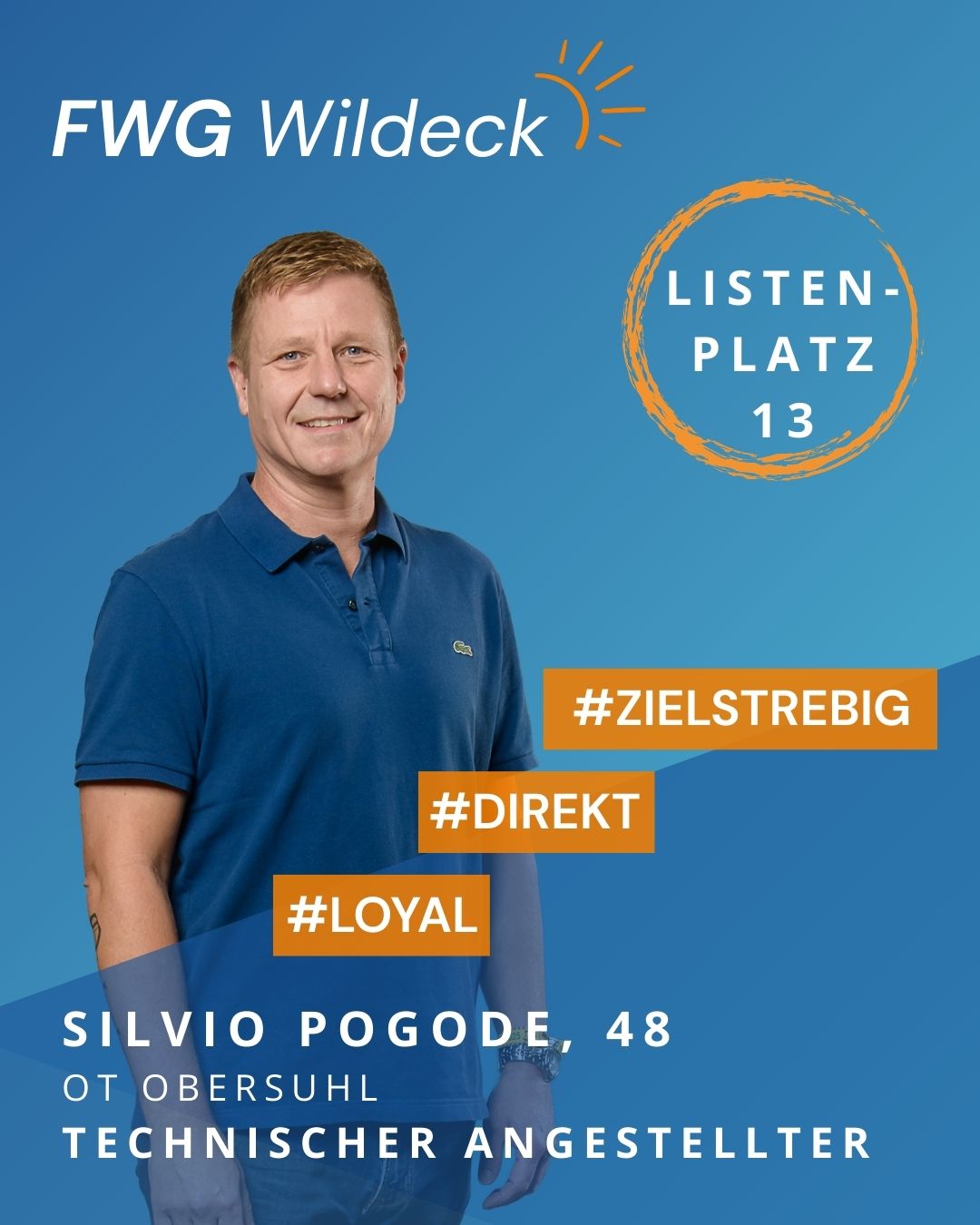 ich kandidiere für das Amt des Bürgermeisters, weil mir unsere Gemeinde am Herzen liegt und ich aktiv Verantwortung für die Zukunft übernehmen möchte. Als Bürger kenne ich die Herausforderungen vor Ort ebenso wie die Chancen, die sich durch gemeinsames Engagement ergeben.